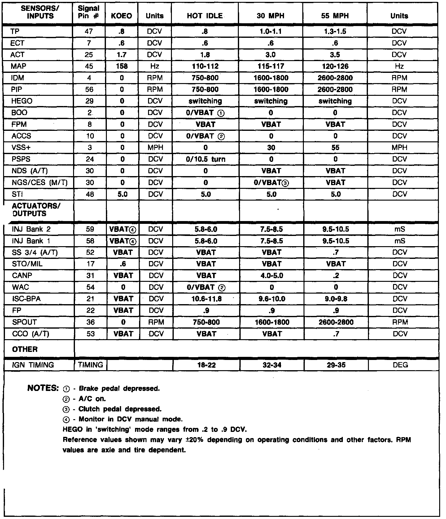 Normal Scan Data Values (Includes PIDs)