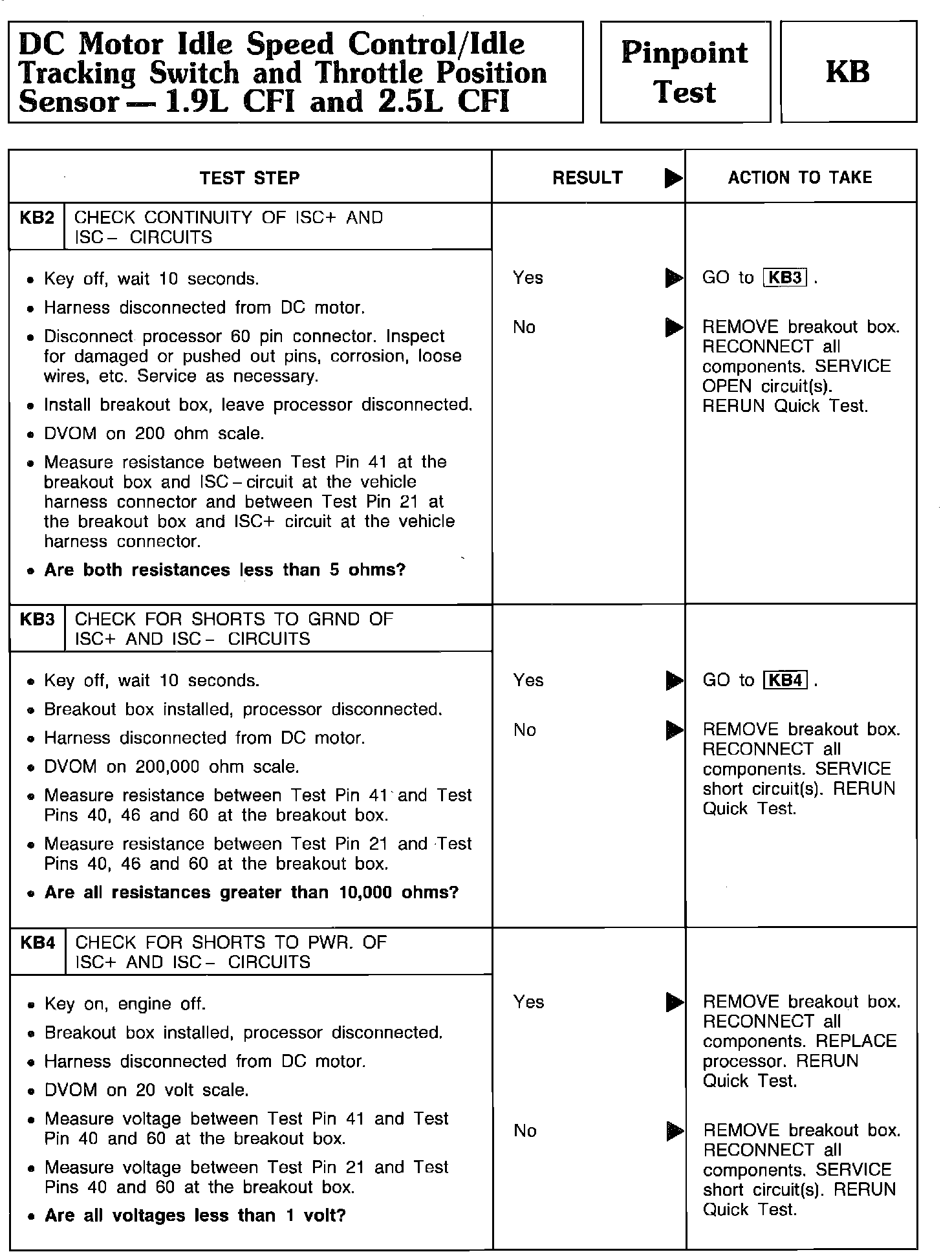 Pinpoint Test KB2 thru KB4 - DC Motor Idle Speed Control/Idle Tracking Switch/TPS: