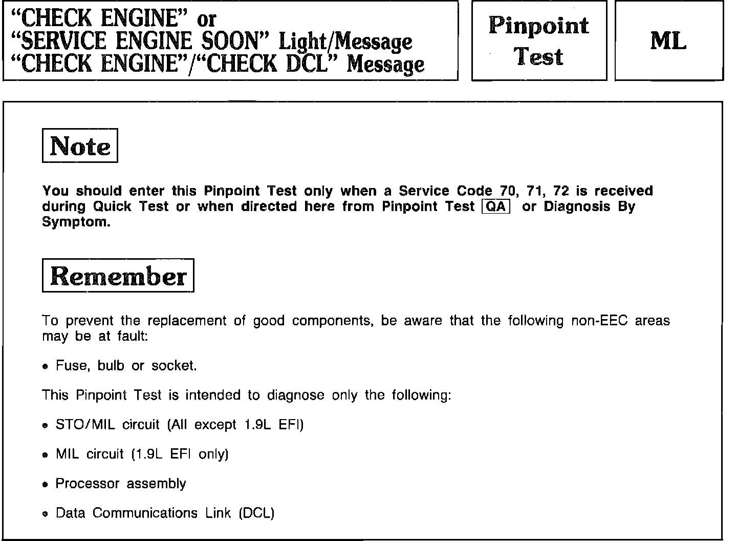 Pinpoint Test ML - "CHECK ENGINE" Light/Message/"CHECK DCL" Message: