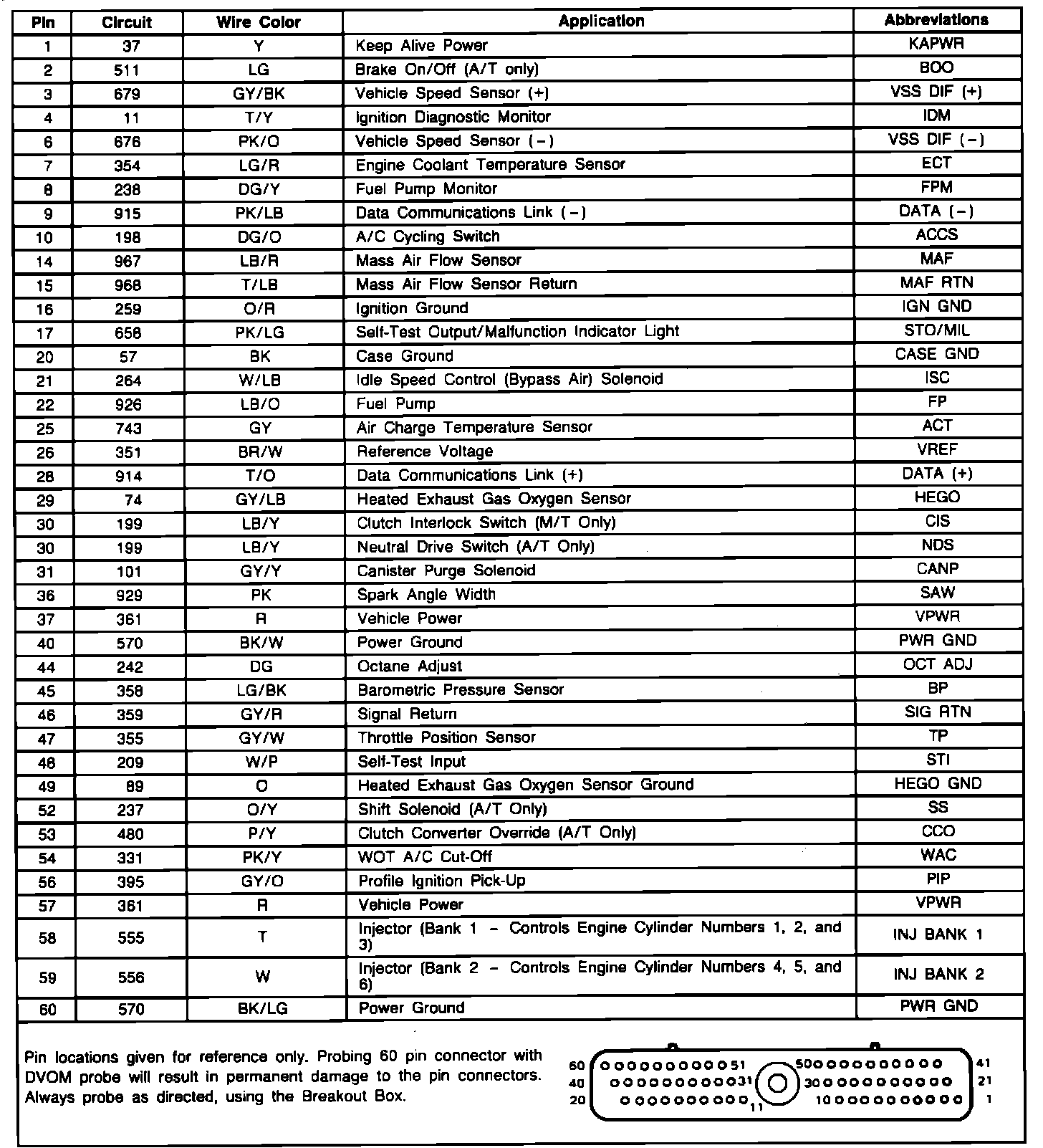 ECA Connector Pin Identification: