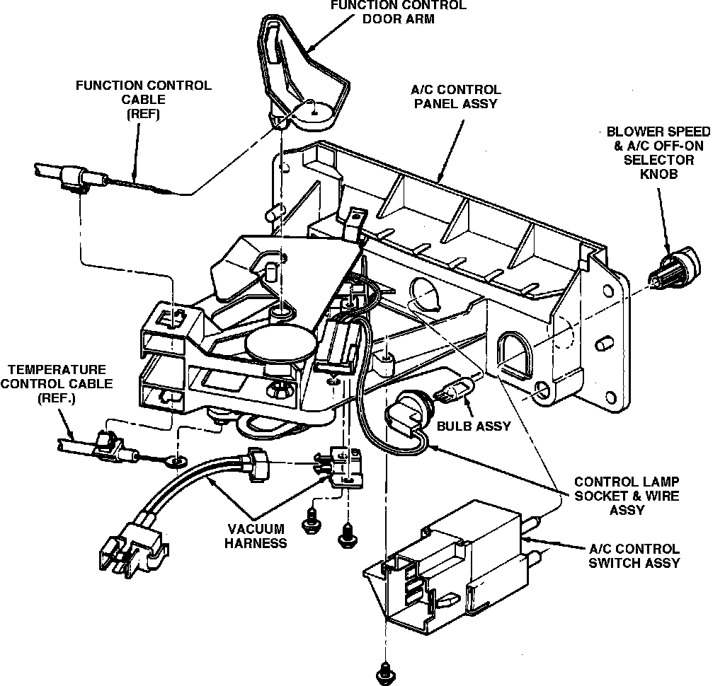 4. Remove four screws attaching control assembly to the instrument panel.