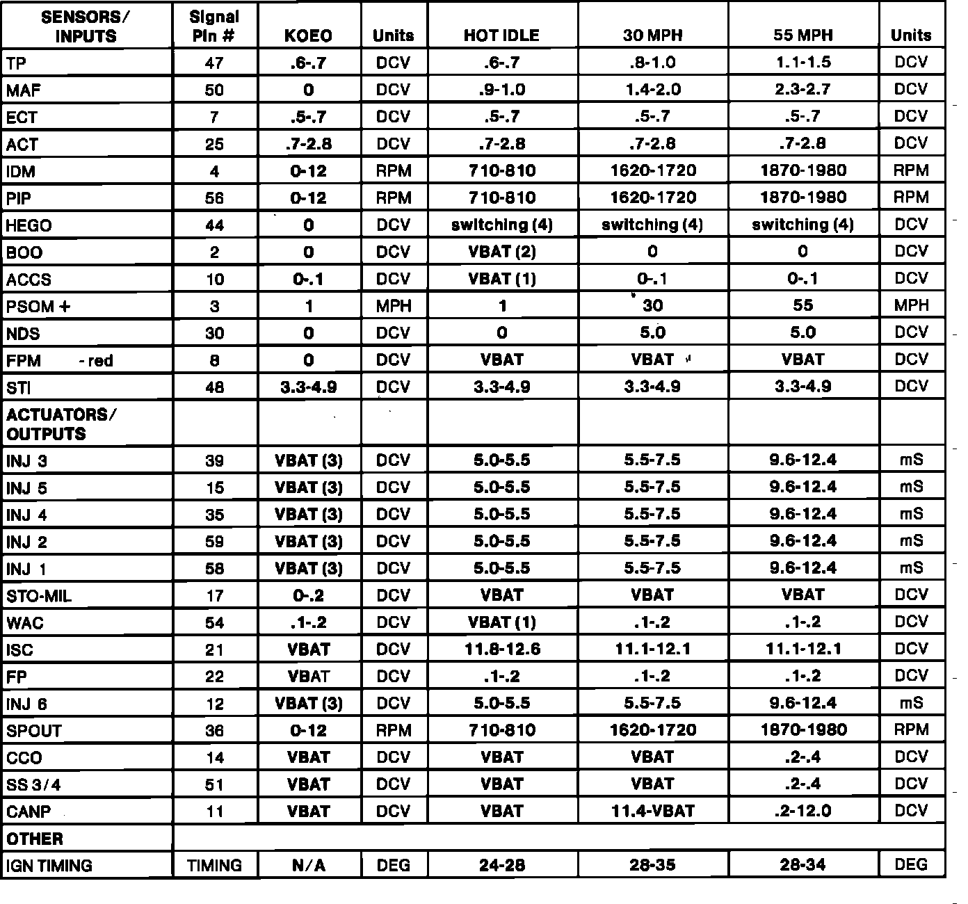 Normal Scan Data Values (Includes PIDs)