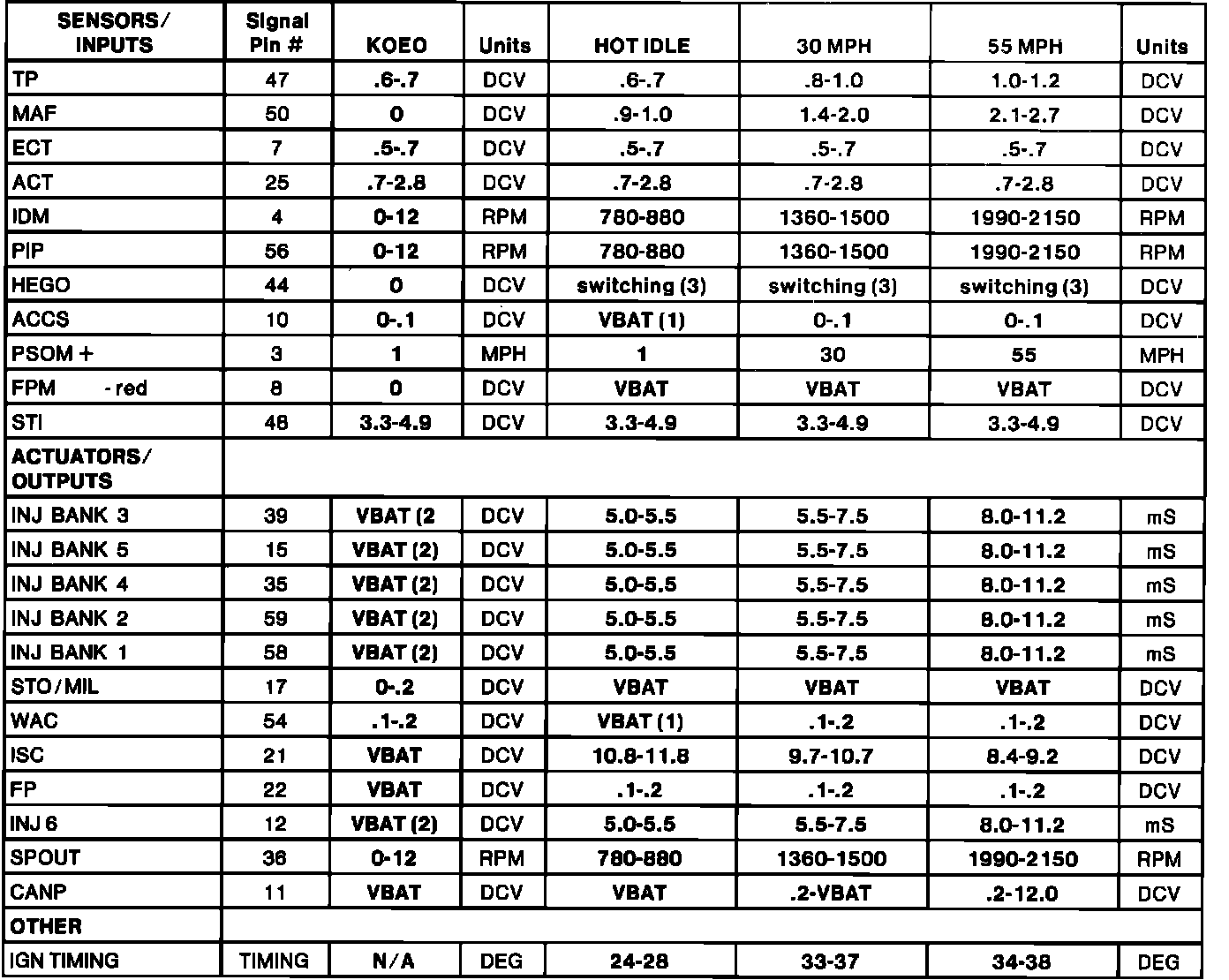 Normal Scan Data Values (Includes PIDs)