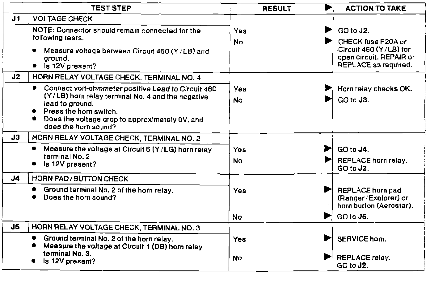 Diagnostic Test J, Horn Relay Circuit Test:
