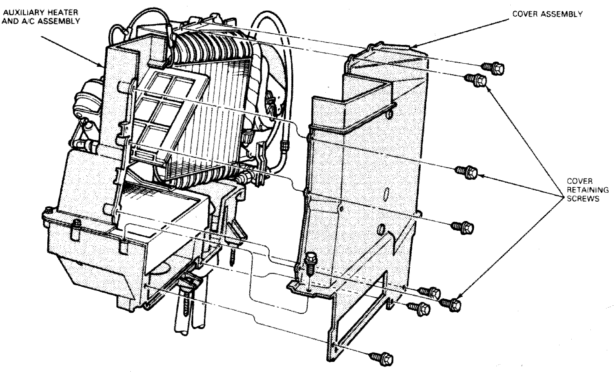 4. Remove auxiliary heater cover assembly screws, then separate cover from auxiliary heater.