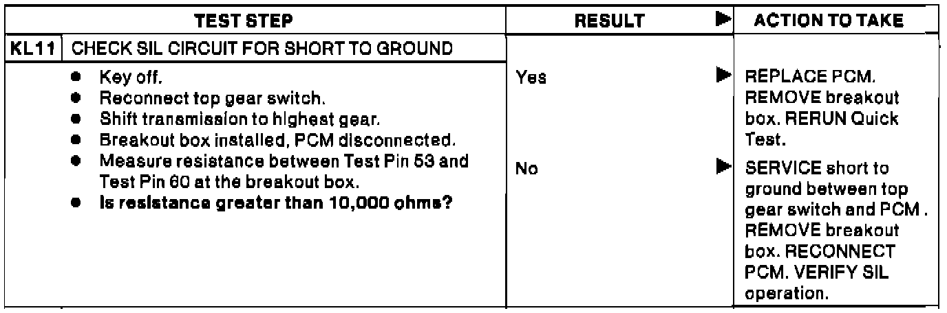 KL11 - Check SIL Circuit For Short to Ground