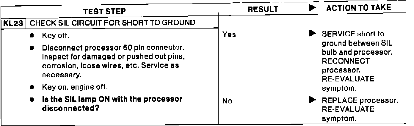 KL23 - Check SIL Circuit For Short to Ground