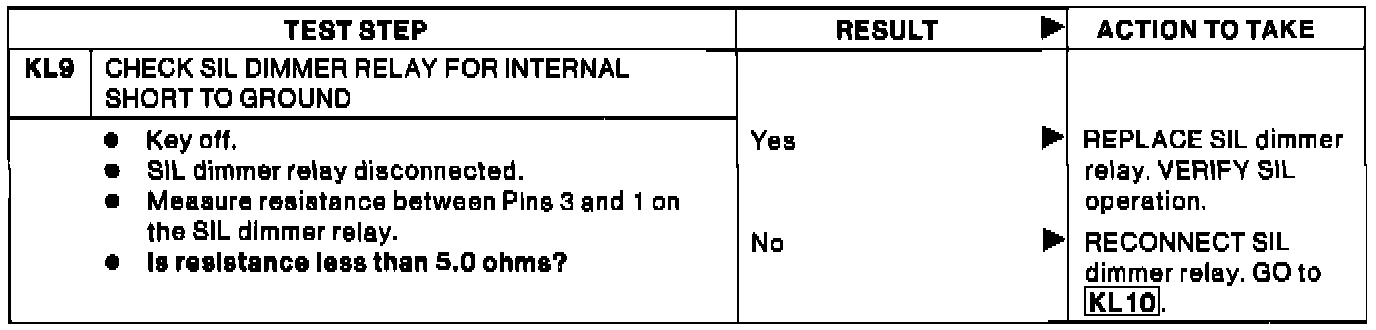 KL9 - Check SIL Dimmer Relay For Internal Short to Ground