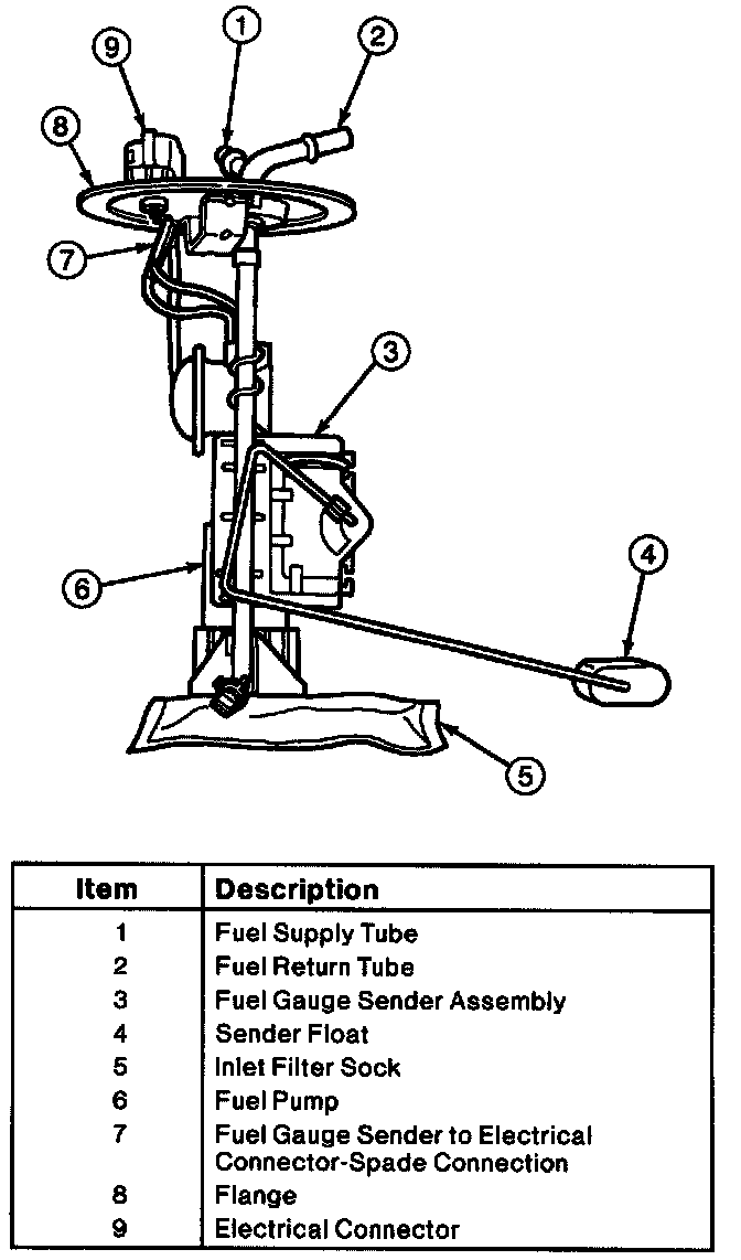 CAUTION: Fuel supply lines remain pressurized for long periods of time after the engine is shut down. This pressure must be relieved before the fuel system is serviced. The fuel system on these vehicles is depressurized by disconnecting the inertia switch and cranking the vehicle for a minimum of 15 seconds.Fuel Pump And Sending Unit: