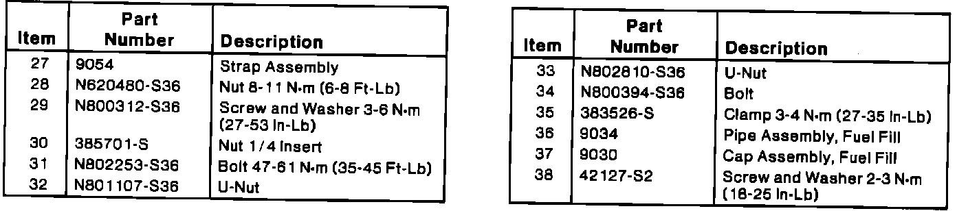 - Tighten bolts securing fuel tank support straps to 47 - 61 Nm (35 - 45 ft.lb).