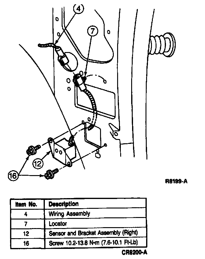 4. Remove two screws retaining right cowl side sensor to right cowl side panel and remove sensor.