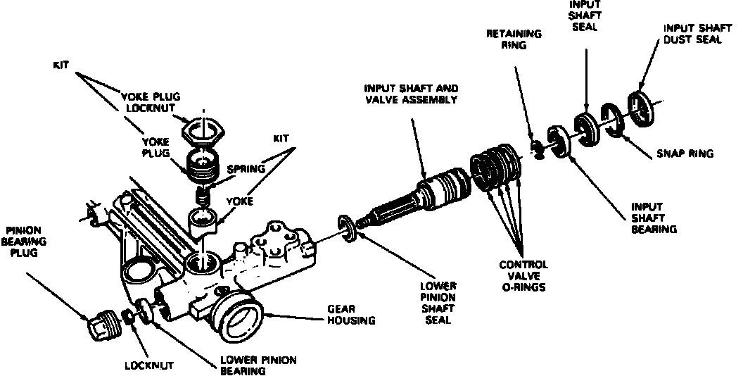 1. Thoroughly clean input shaft valve housing, yoke locknut, plug and pinion bearing plug.