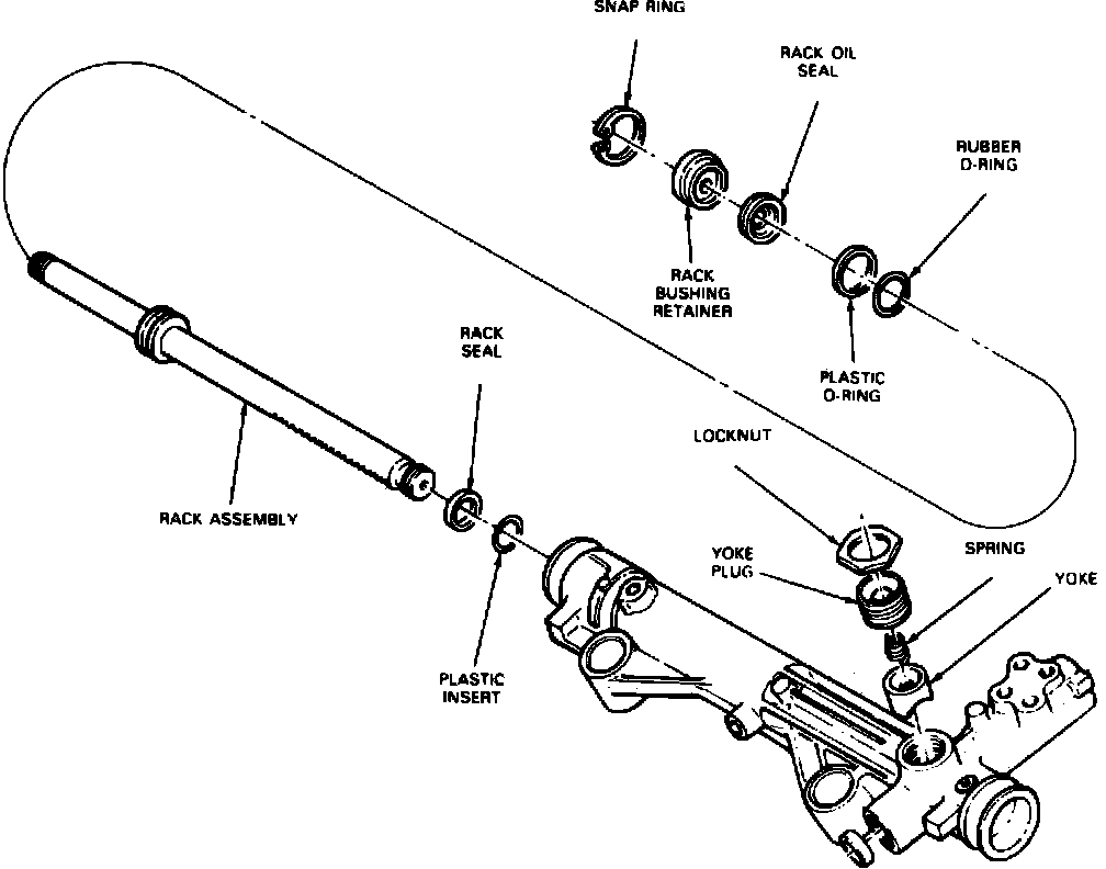 9. Pack rack teeth with suitable lubricant and apply light coat of lubricant to yoke contact area in back of rack teeth.