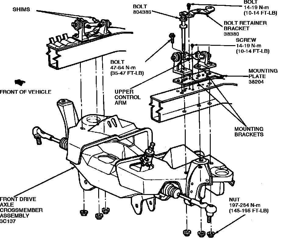 Fig. 6 Upper Control Arm Assembly And Mounting Bracket Replacement, 4WD: