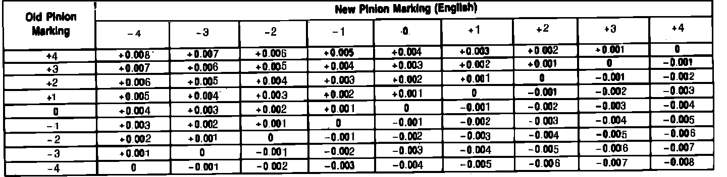 Fig. 7 Drive Pinion Adjusting Shim Thickness Chart: