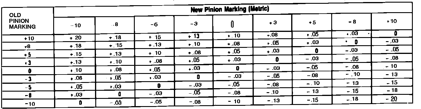 Fig. 8 Drive Pinion Adjusting Shim Thickness Chart (Metric):
