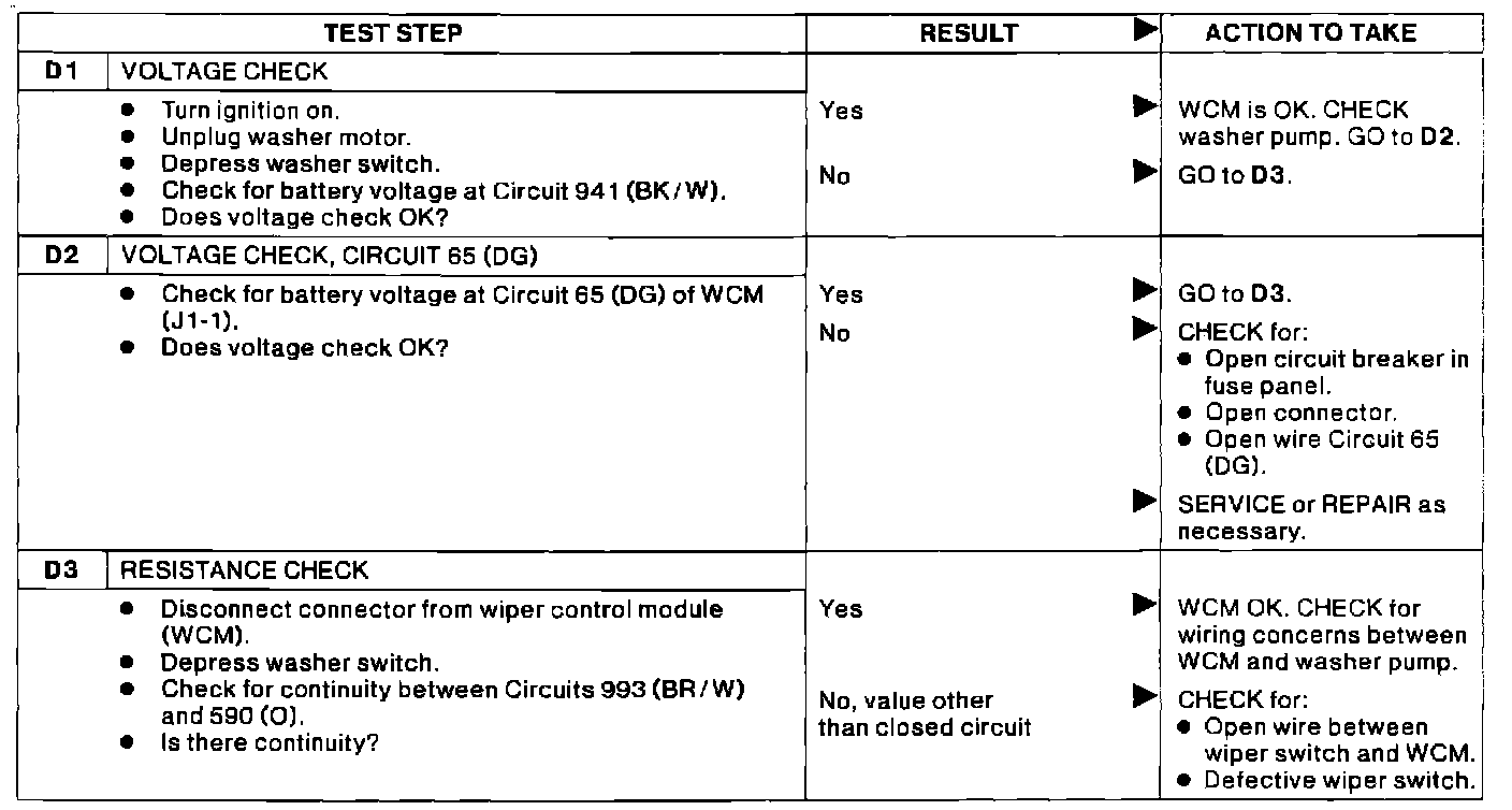 Diagnostic Test D, Wipers Inoperative: