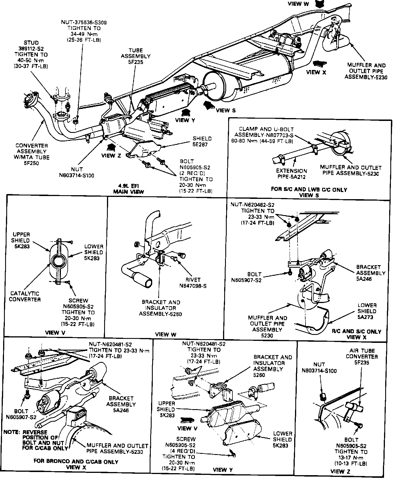 8. Torque the Y-pipe to exhaust manifold bolts to 25-36 lb. ft. (34-49 N-m).