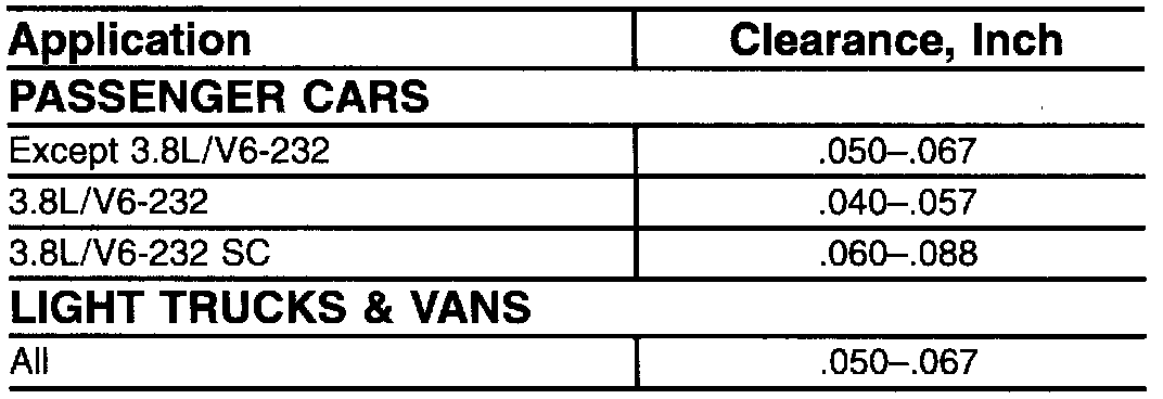 Direct Clutch Clearance Chart: