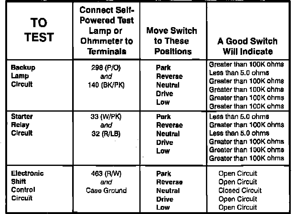 Schematic Park Neutral Switch - Transmission Mode Switch: