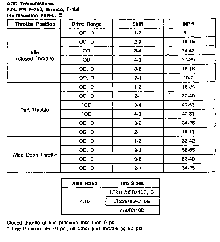 AOD 4-spd A/T, Shift Speeds (5.0L EFI,F-150/250,Bronco):