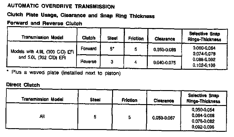 AOD 4-spd A/T, Clutch Plate Usage/Clearances: