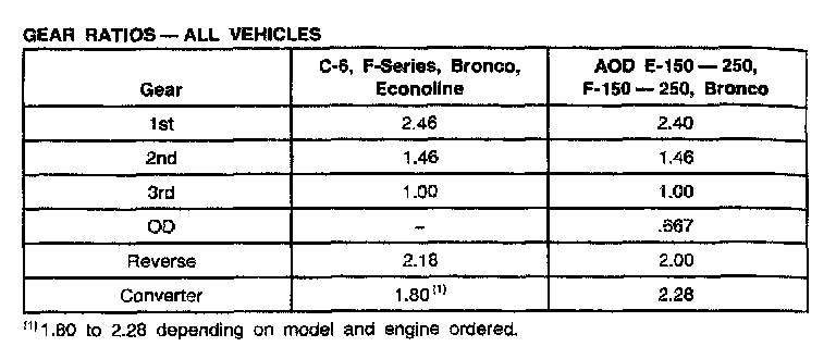 AOD 4-spd A/T, Gear Ratios (E150-250, F150-250, Bronco):