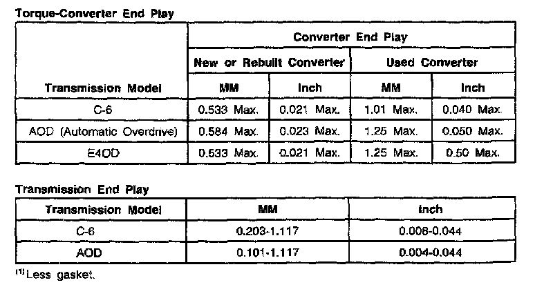 AOD 4-spd A/T, Transmission/Converter End Play: