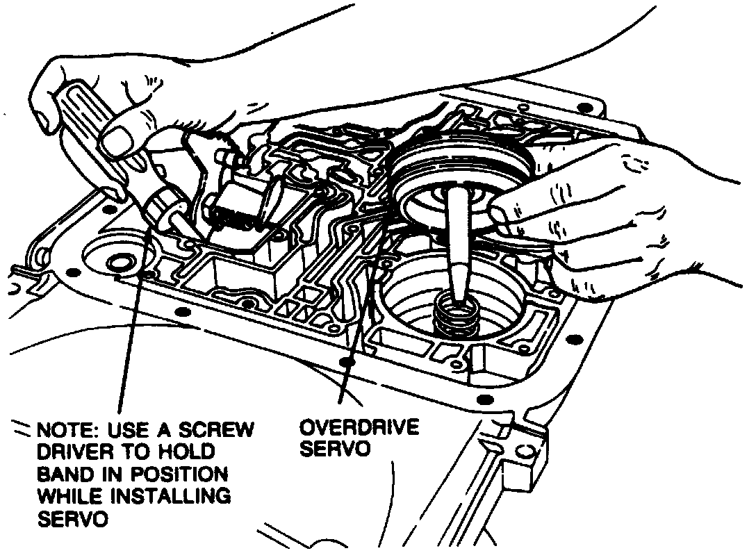 17. Lubricate overdrive servo cover seals and install overdrive servo.