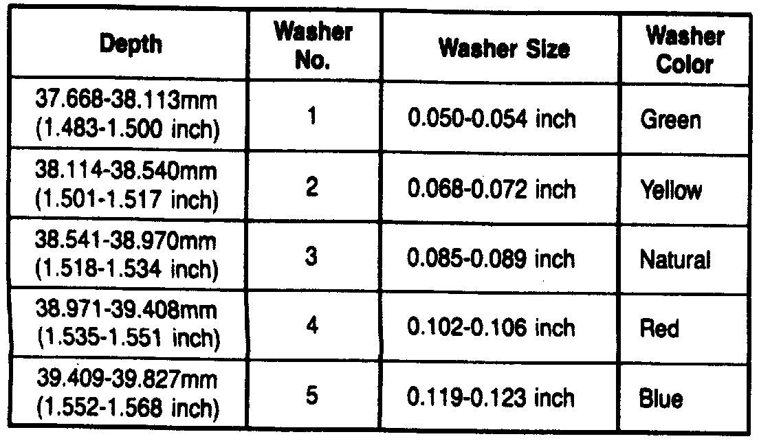 21. If average depth is not 1.629-1.640 inches for V6-3.8L applications or 1.634-1.646 inches for other applications, install correct separator plate and recheck clearance. Selective steel separator plates are available in 0.067-0.071, 0.077-0.081, 0.087-0.091, and 0.097-0.101 inch thicknesses.