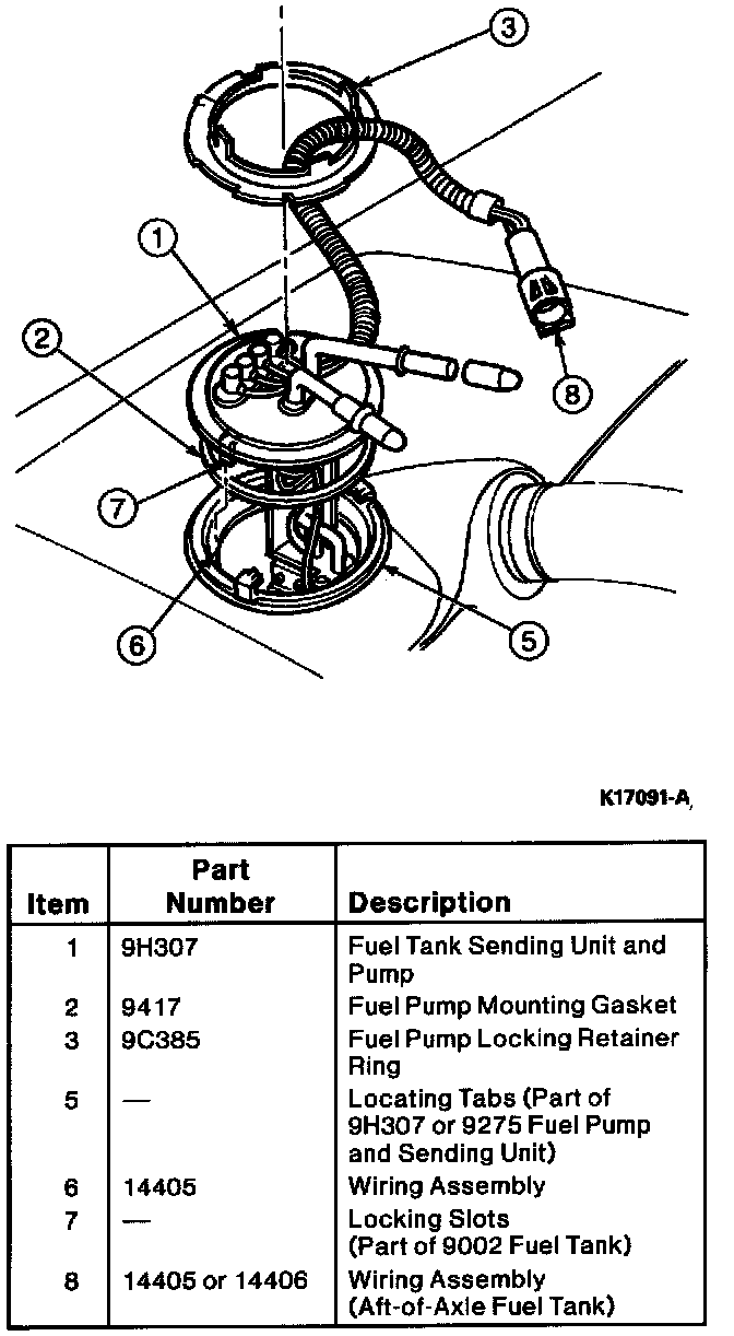 3. Install fuel pump and sender assembly carefully to ensure that the filter is not damaged. Be sure that the locating keys are in keyways and the seal ring remains in place.