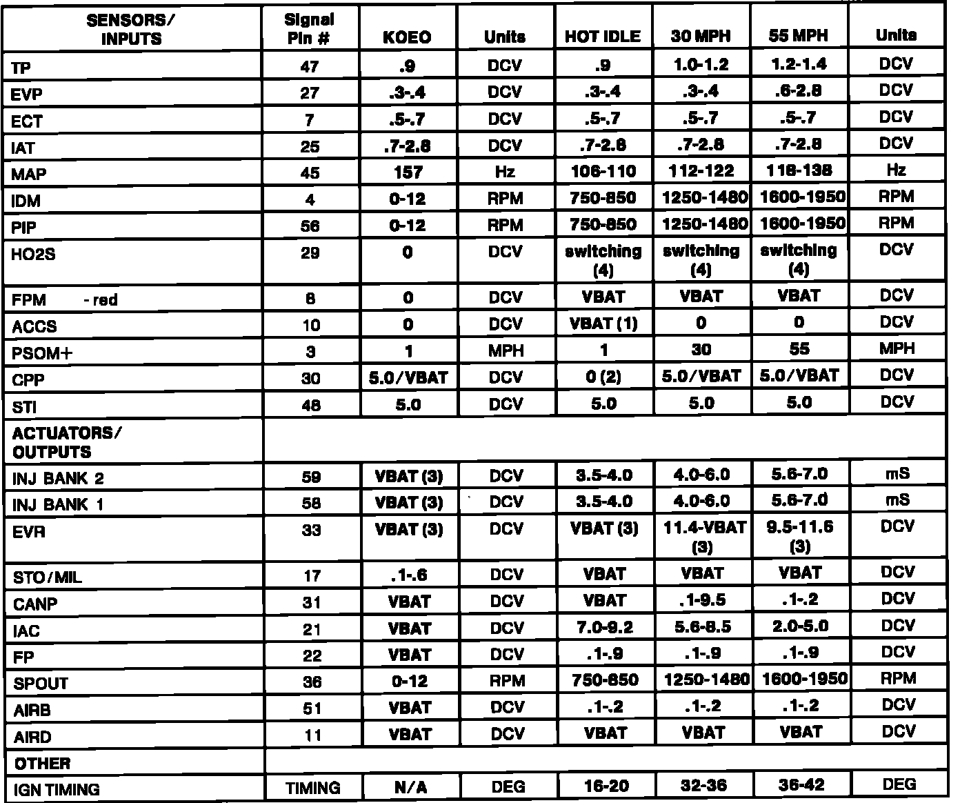 (4) -- HO2S should switch from rich (red LED) to lean (green LED), or lean to rich, at least once every 3 seconds. HO2S voltage should toggle above and below .450 DCV and should never be a negative value.
