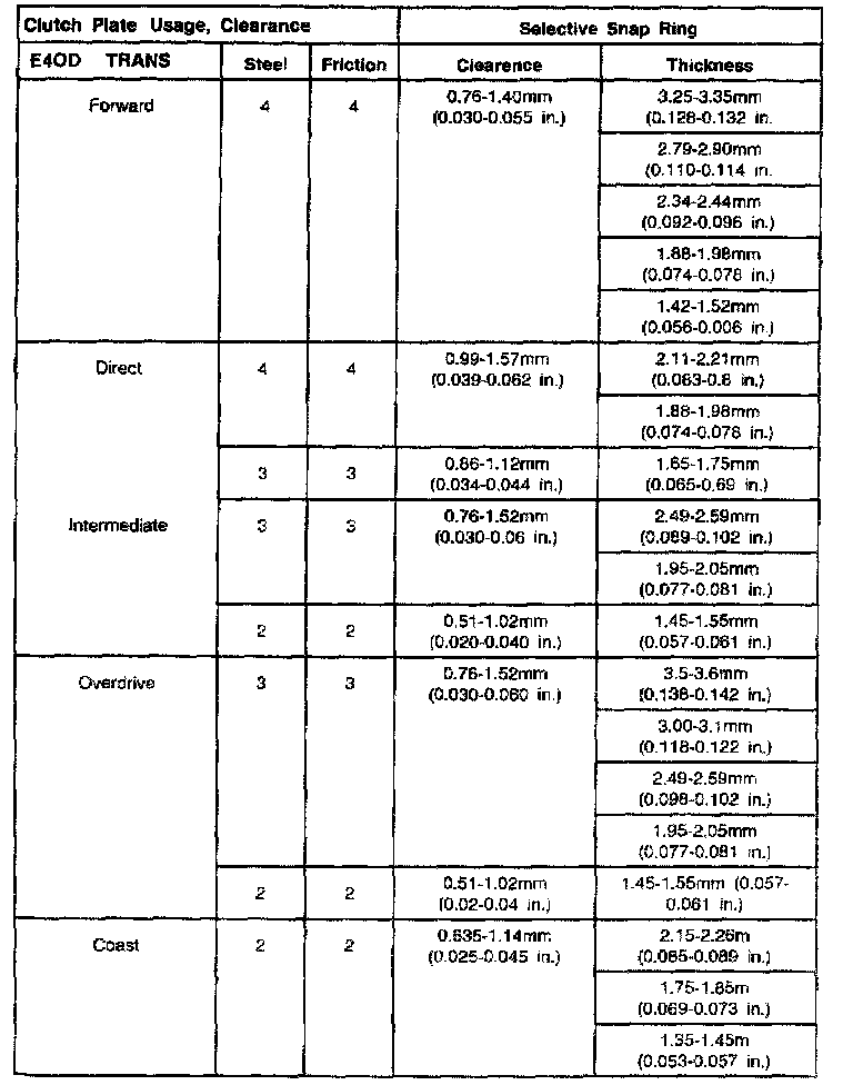 E4OD 4-spd A/T, Clutch Plates Usage/Clearances: