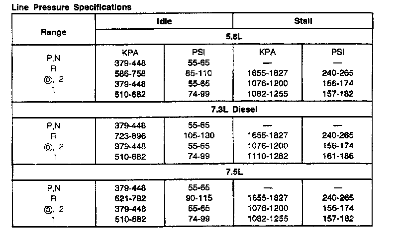 E4OD 4-spd A/T, Line Pressure: