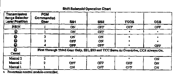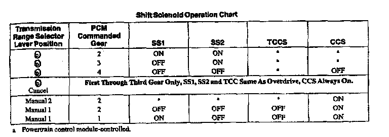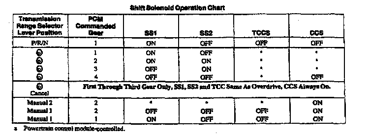 E4OD 4-spd A/T, Shift Solenoid Chart: