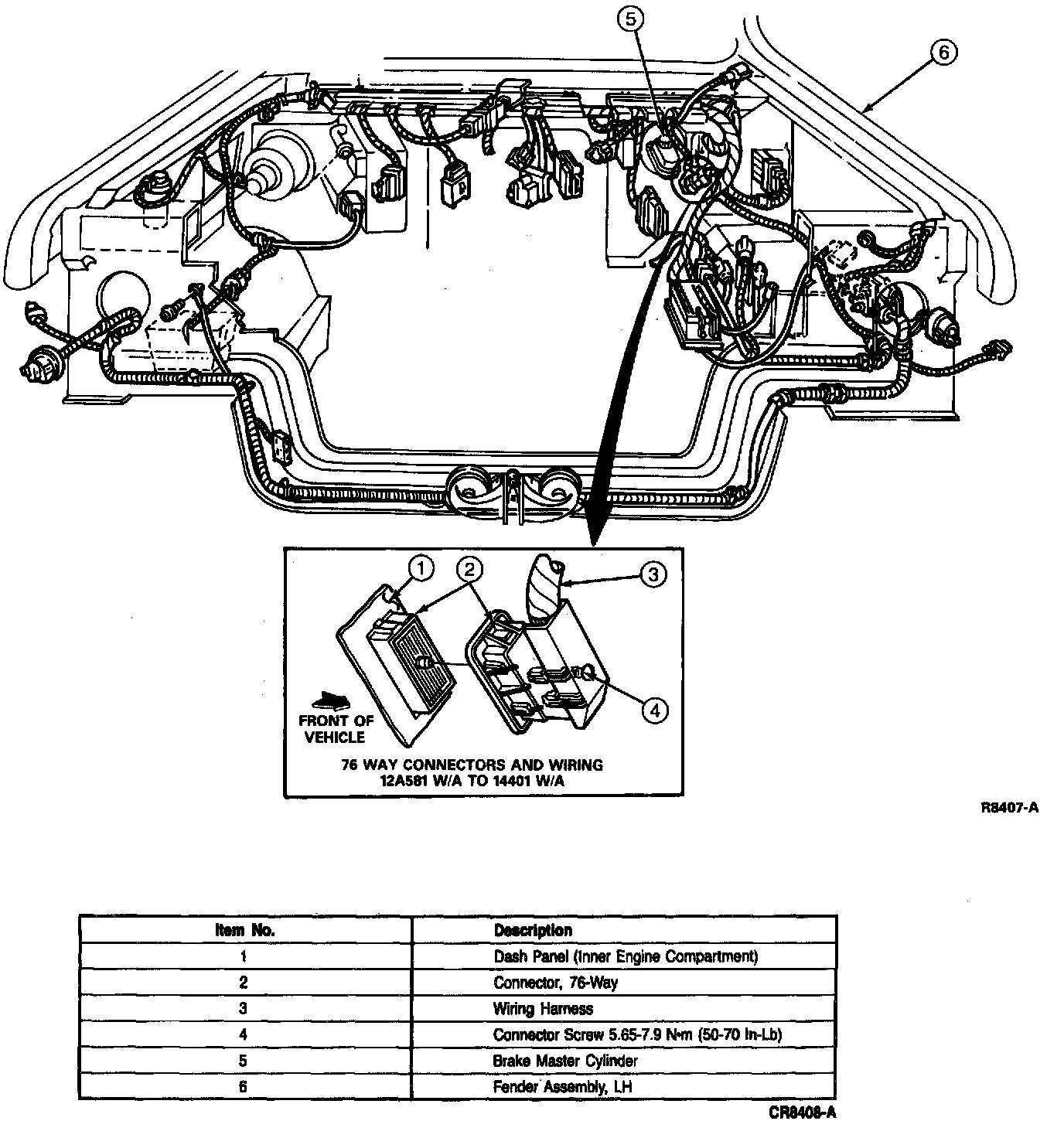 2. Disconnect wiring on dash panel in engine compartment by loosening the bolt in the center of the connector.