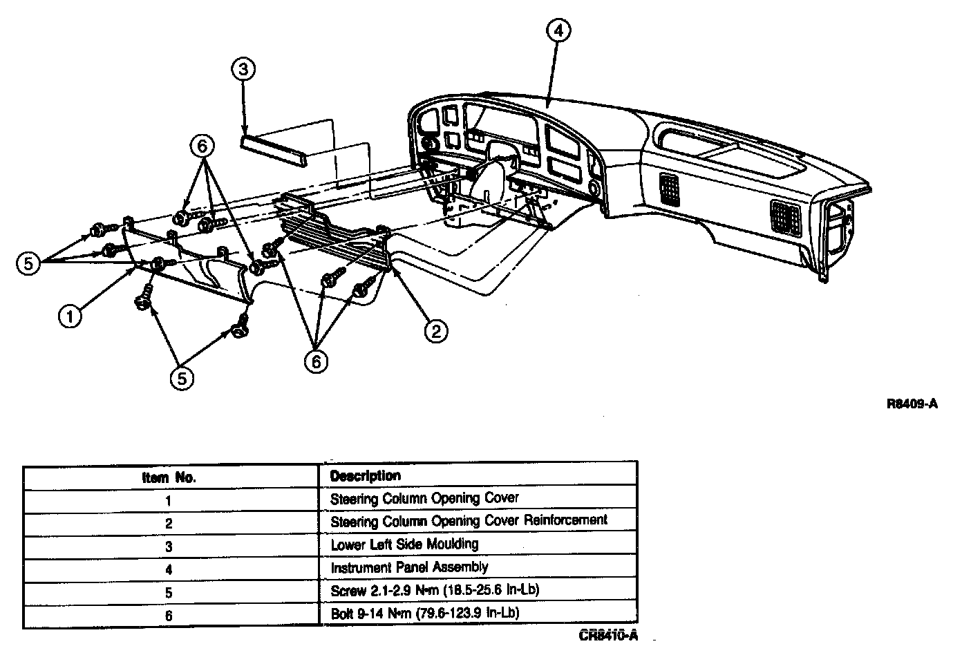 5. Remove left and center snap-in moulding on each side of the steering column.