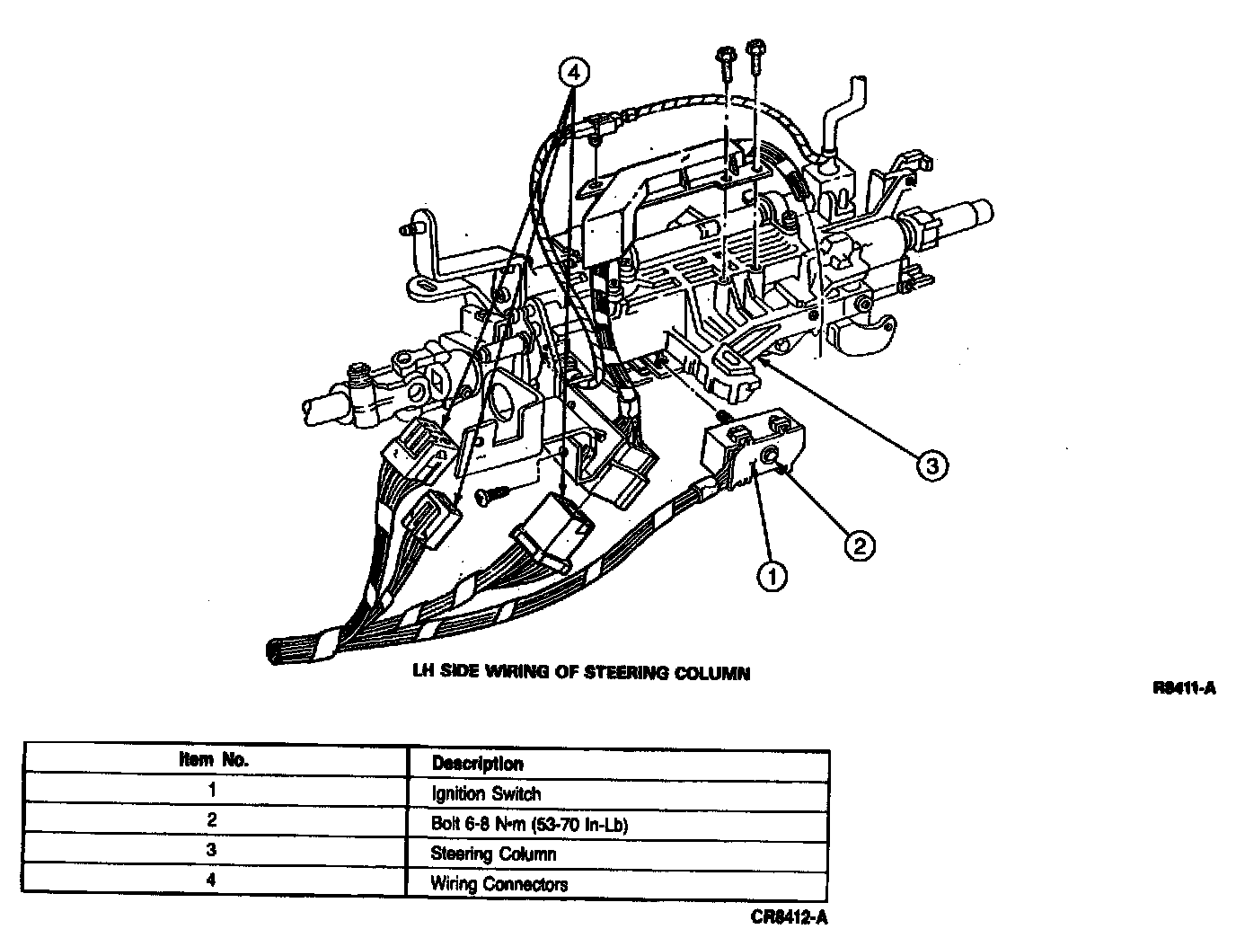10. Loosen retaining bolt and disconnect ignition switch connector from steering column.