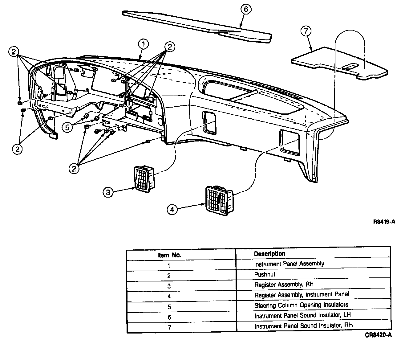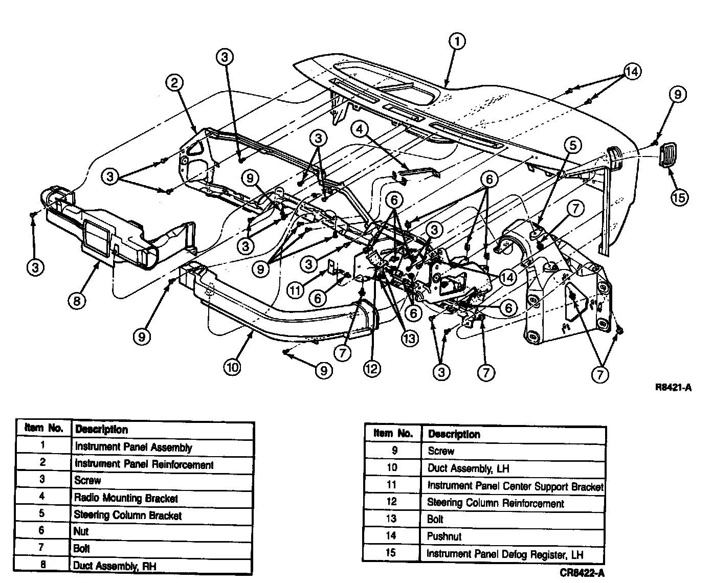 20. Remove one bolt attaching the center of the instrument panel below the center instrument panel register.