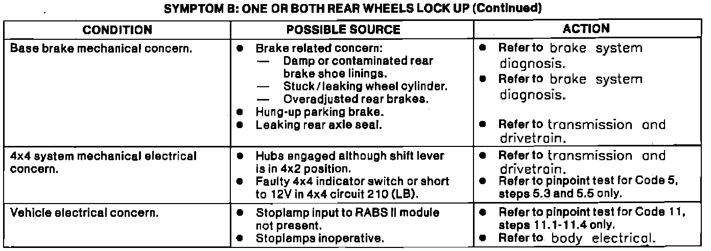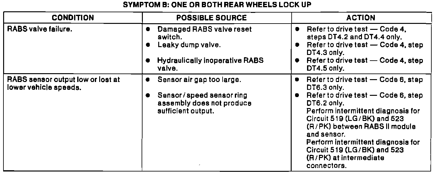 Symptom B -- One Or Both Rear Wheels Lock Up: