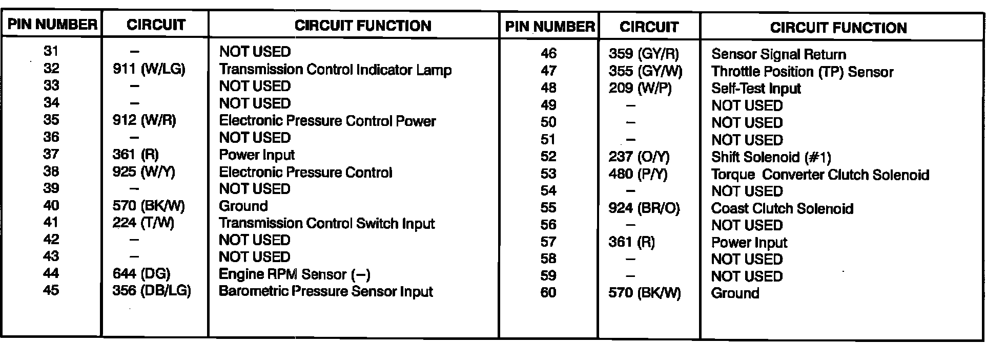 Powertrain Control Module (PCM) Connector Pin Useage: