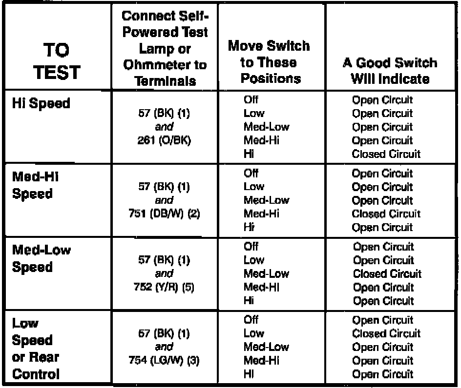 Component Testing Procedure,Auxiliary A/C-Heater,Blower Motor Switch: