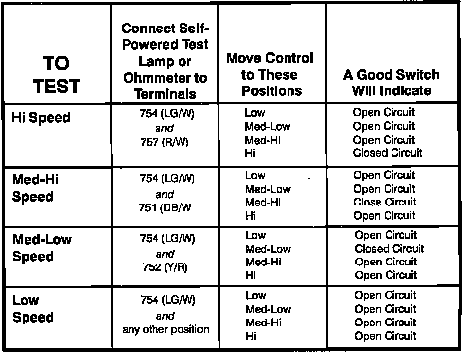 Component Testing Procedure,Rear Auxiliary,Blower Motor Switch: