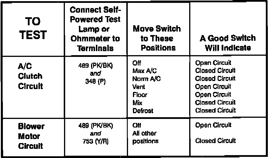 Component Testing Procedure,Heater and A/C-Heater Control Assembly: