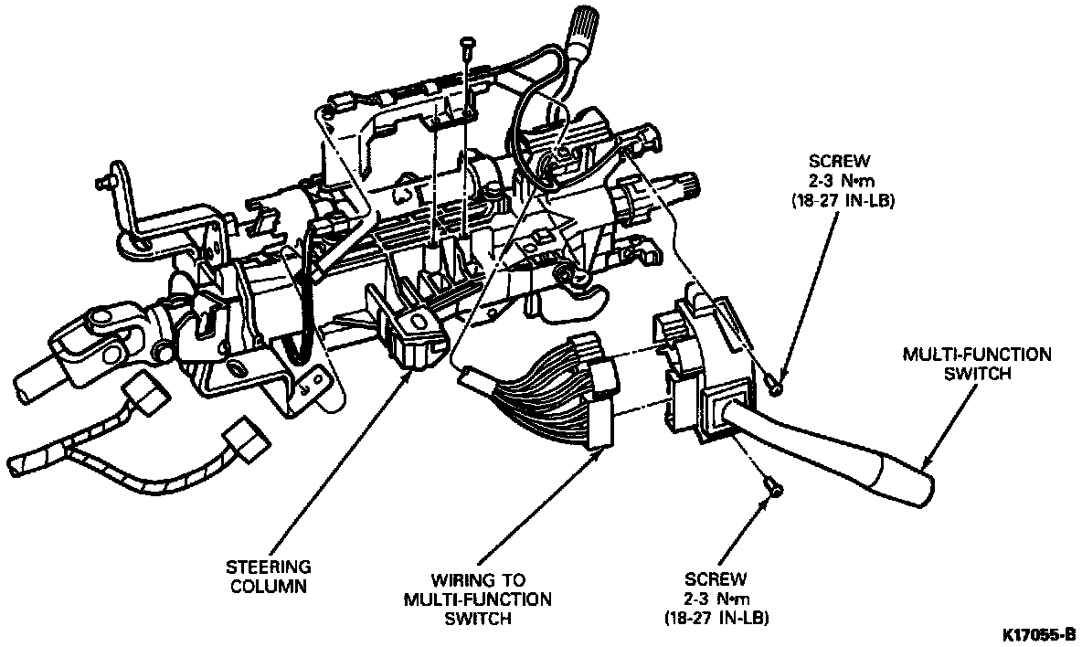 3. Remove two self-tapping screws that attach the multi-function switch to the steering column casting. Disengage switch from casting.