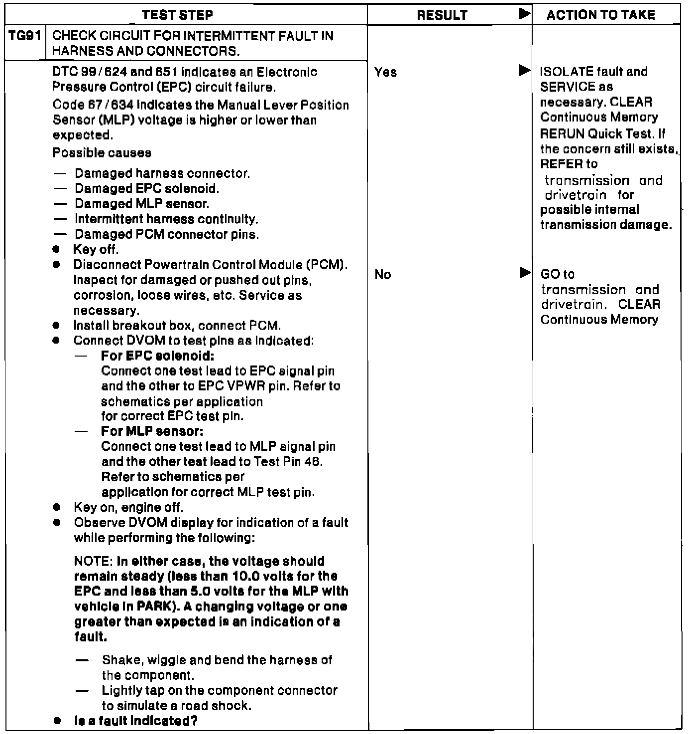 TG91 - Check For Intermittent Fault In Harness and Connectors