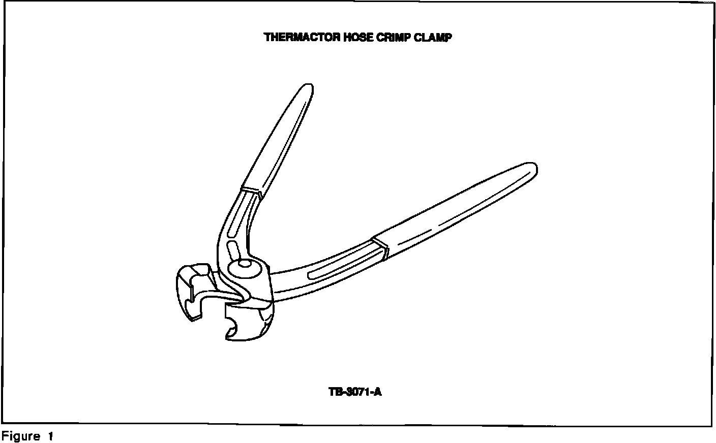 Remove thermactor clamps using the new crimping plier desirable tool, refer to Figure 1. The tool can be ordered from Owatanna Tool Co. (OTC) under part number D93T-1099-A. Call OTC Ford Order Desk: 1-800-533-5338.