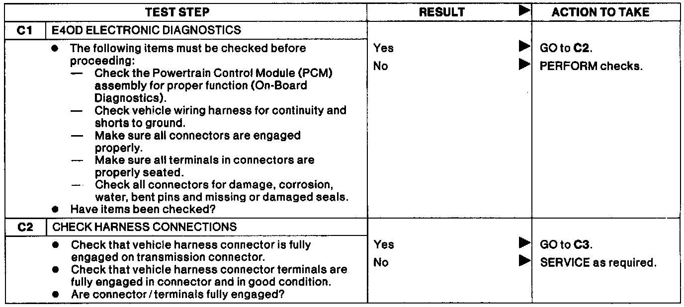Pinpoint Test C: Diagnostic Trouble Codes: 62/628 Torque Converter Clutch Error Detected; 94/627, 629 TCC Solenoid Circuit Failure.: