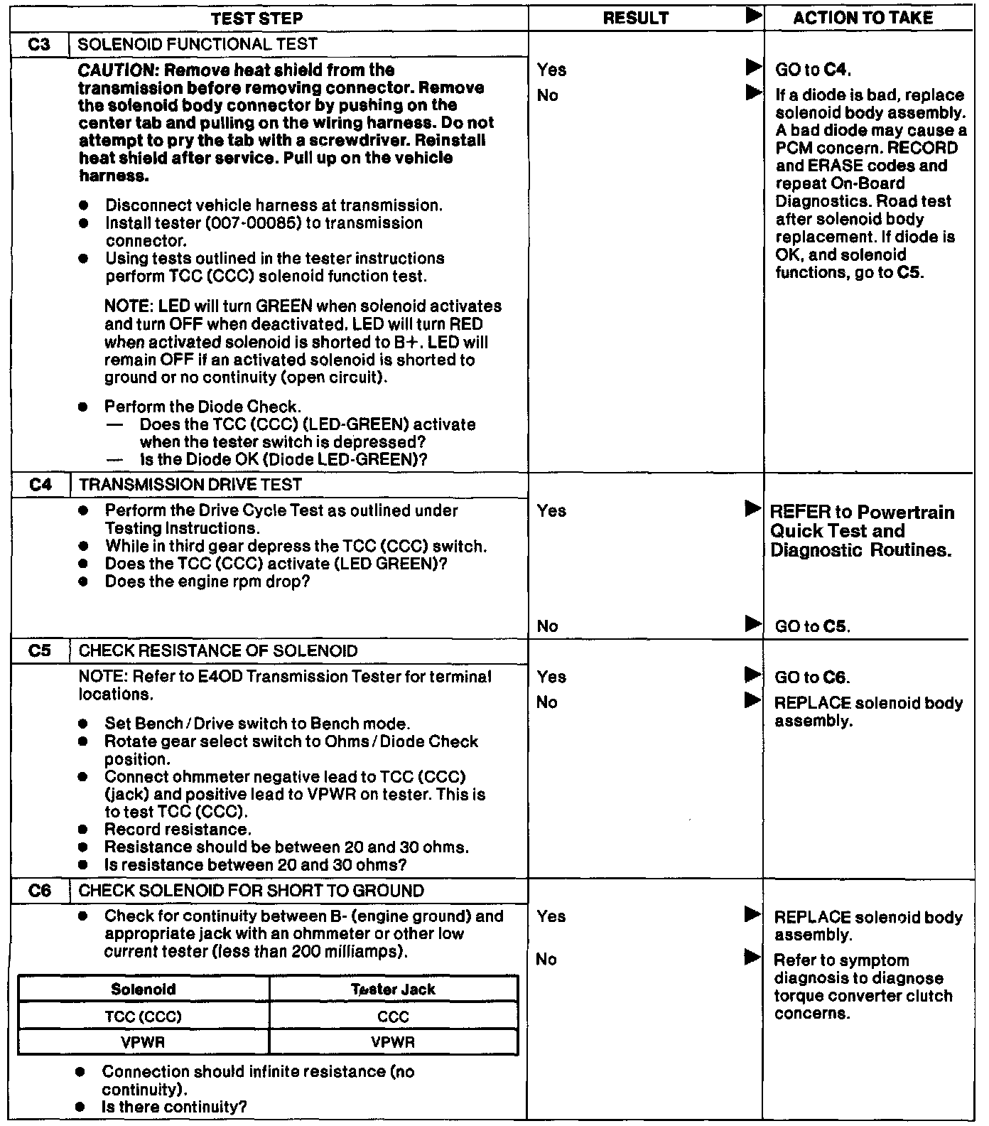 Pinpoint Test C: Diagnostic Trouble Codes: 62/628 Torque Converter Clutch Error Detected; 94/627, 629 TCC Solenoid Circuit Failure.: