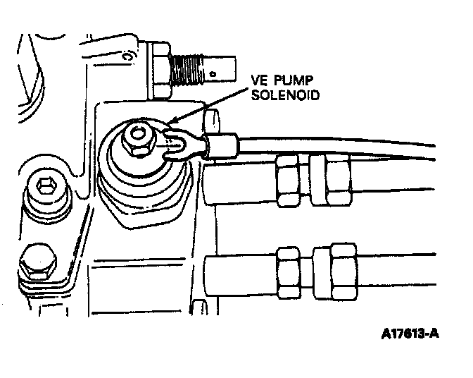 12. After completing the compression check, reinstall the injectors (use new washers) and lines and connect the plug to the fuel shutoff solenoid.